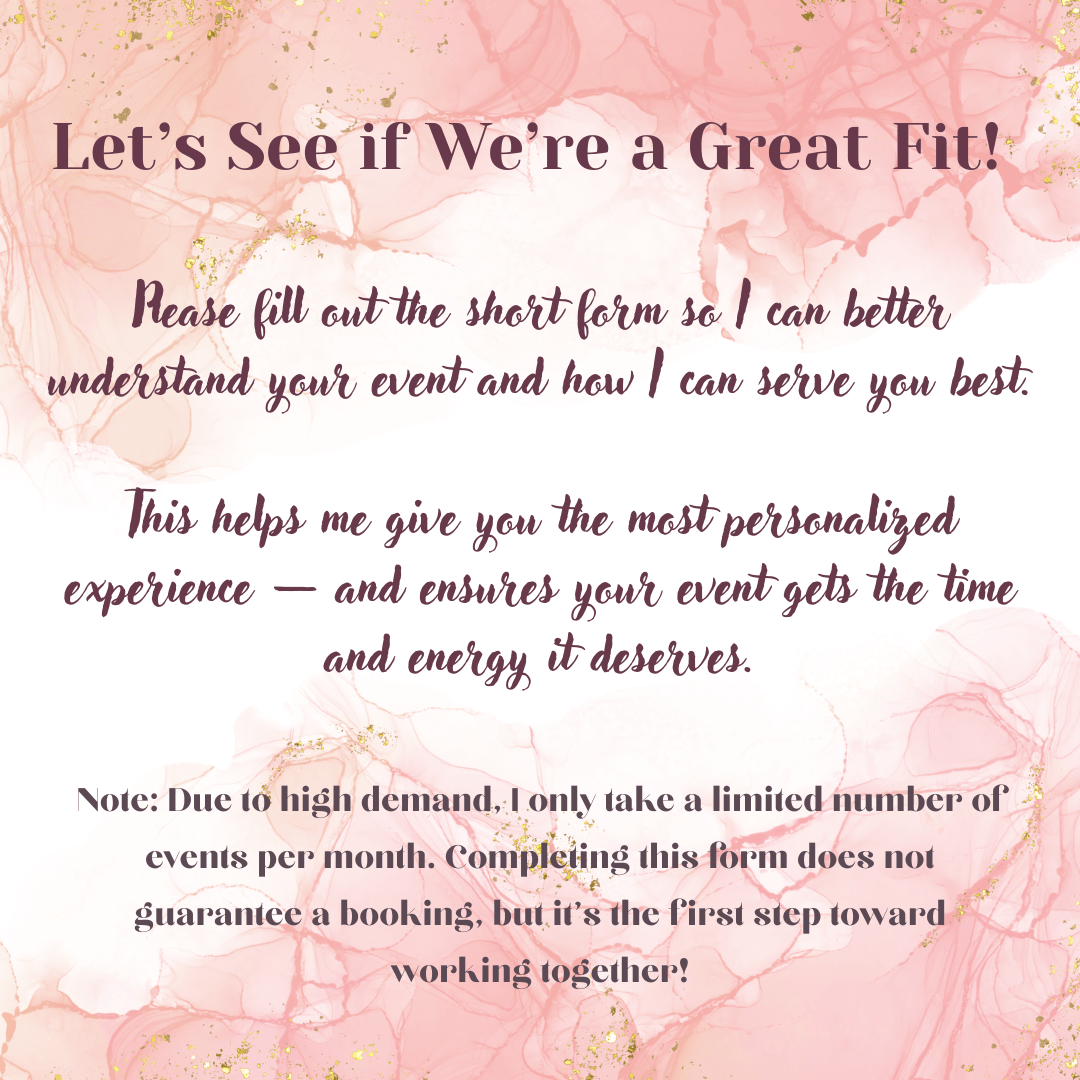 If you’re planning a special event, let’s connect and see how I can bring it to life with style and joy.